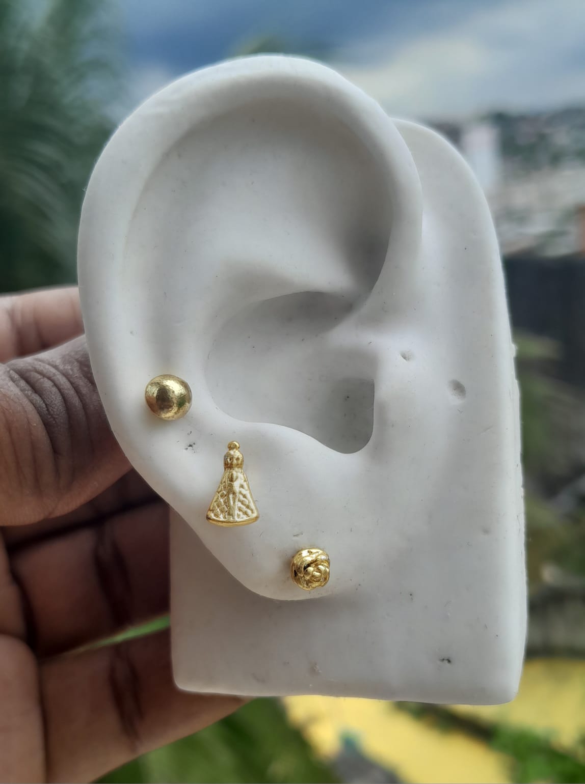 Cartela Brinco Trio Folheado a Ouro – Nossa Senhora Aparecida – Antialérgico ✨🙏💛