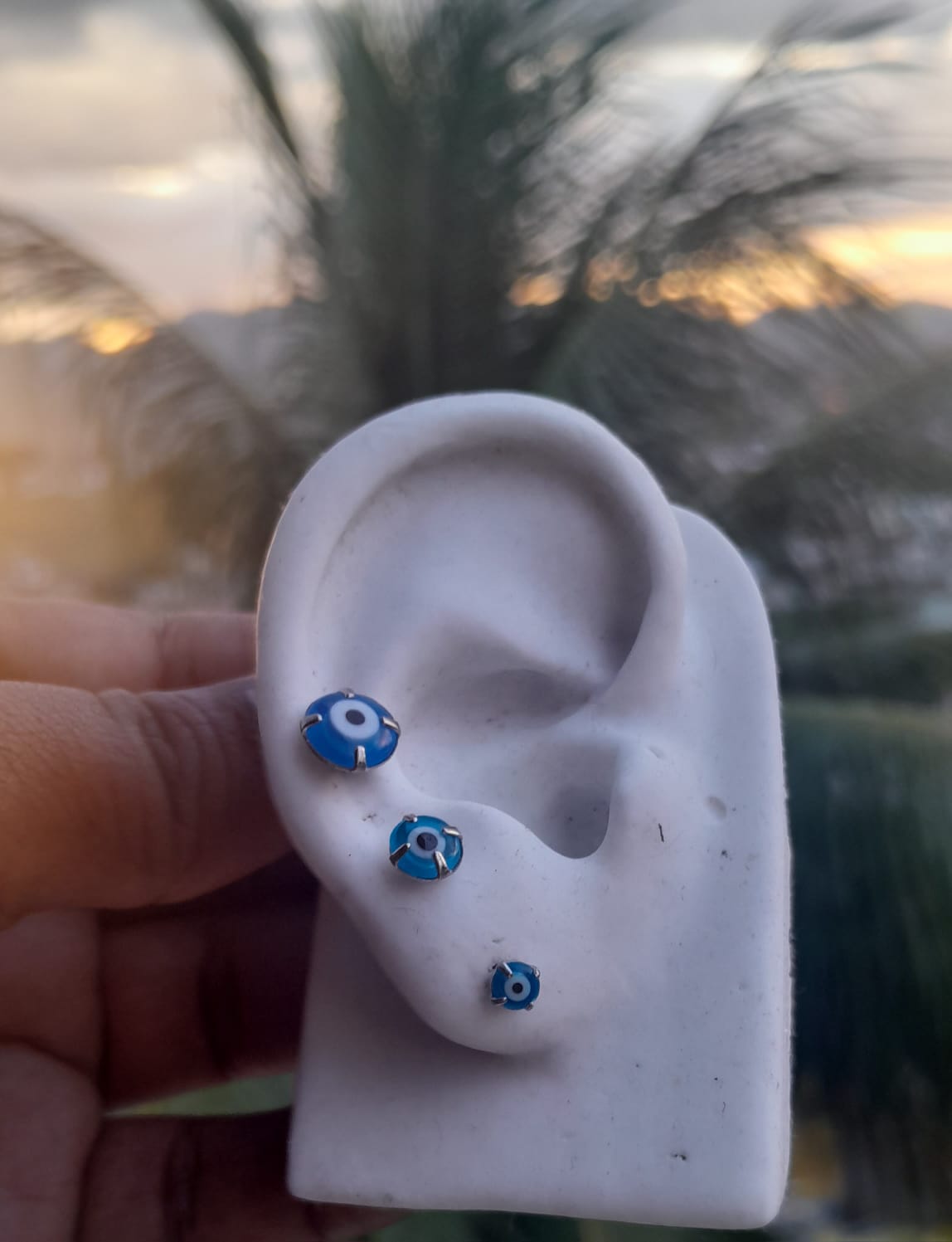 Adicione um toque de proteção e elegância ao seu visual com a Cartela Trio de Brinco de Aço Inoxidável com Olho Grego Azul Claro, um acessório cheio de significado e sofisticação! ✨🔵💖