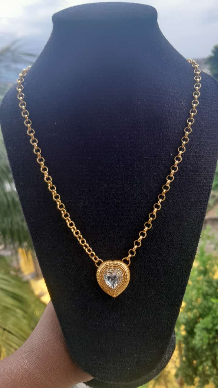 Realce seu estilo com o Cordão Elo Grosso Folheado com Coração e Zircônia, um acessório luxuoso que transmite charme e sofisticação! ✨💖