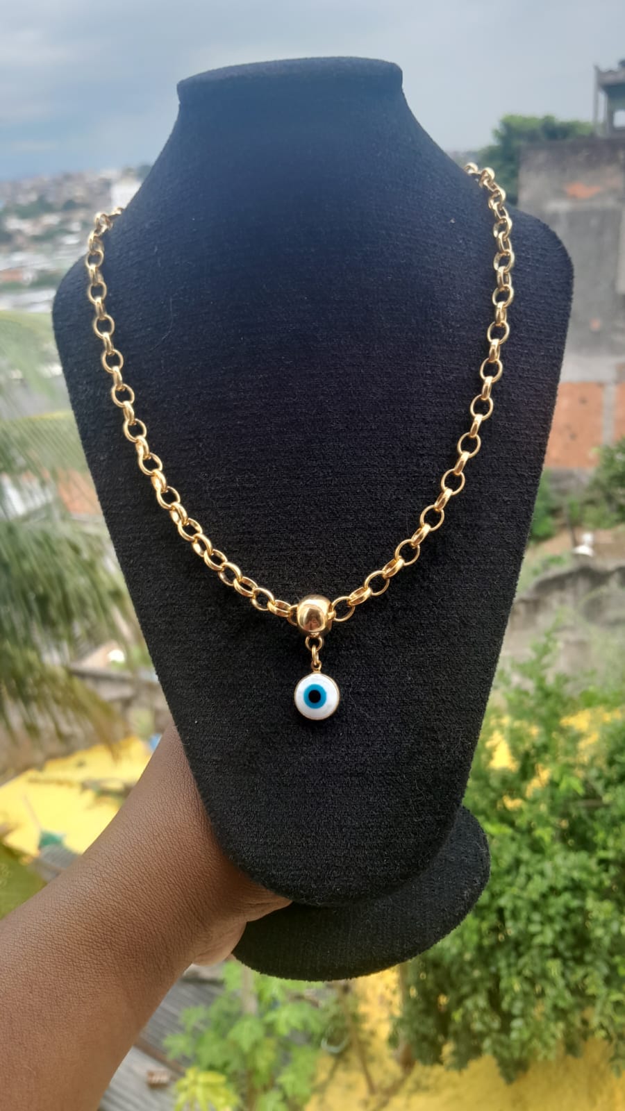 **Cordão Elo Grosso Folheado com Olho Grego – Antialérgico** ✨🔵